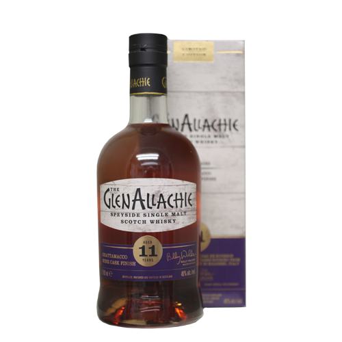 Nase: Noten von Mokka, Feigensirup und gerösteten Haselnüssen; ein Hauch Honig und getrocknete rote Beeren / Gaumen: Toffee, Kaffee und ein Hauch Kirsche; wieder süss und reichhaltig / Abgang: lang anhaltend mit Aromen von Melasse und ZwetschgenMengeGlenAllachie 10 y. o. Grattamacco Wine Cask Finish